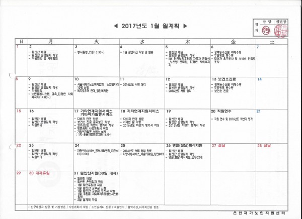 2017년 1월 월계획 페이지 정보 작성자 은천노인복지회 작성일17-02-01 17:46 조회74,586회 댓글0건 관련링크 이전글 다음글 목록 답변 본문 은천재가노인지원센터 2017년 1월 월계획 이전글 다음글 목록 답변