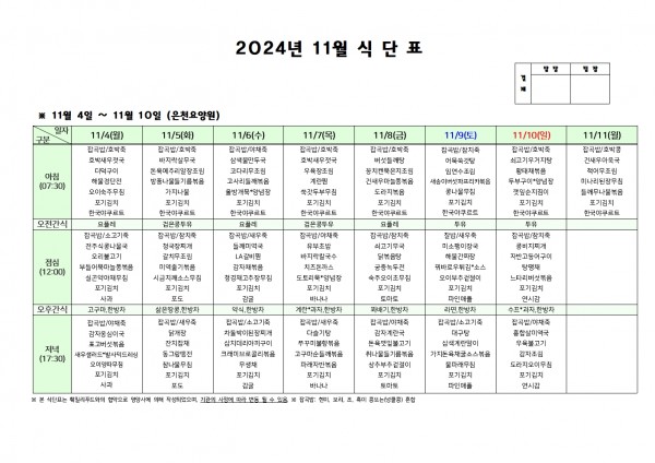 11월 첫주 식단표 > 요양원 게시판