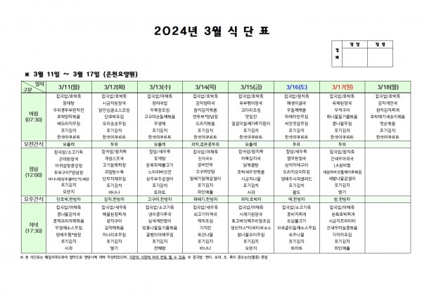 3월 셋째주 식단표 > 요양원 게시판