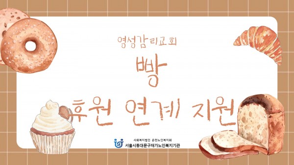 [재가노인지원서비스] 2026년 3월 영성감리교회(빵) 후원 페이지 정보 작성자 은천노인복지회 작성일26-04-06 11:18 조회20회 댓글0건 관련링크 이전글 다음글 목록 답변 본문 기관 인근에 위치한 '영성감리교회'에서 빵(단팥, 소보로, 완두앙금) 200개를 후원해주셨습니다. 이전글 다음글 목록 답변