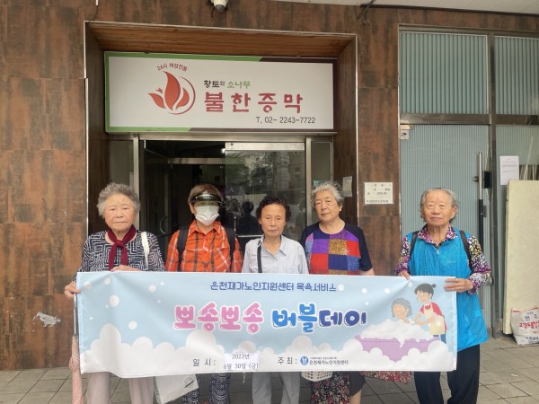 [재가노인서비스] 목욕지원사업 '뽀송뽀송 버블데이' 페이지 정보 작성자 은천노인복지회 작성일23-07-12 16:12 조회9,034회 댓글0건 관련링크 이전글 다음글 목록 답변 본문 장안동에 위치한 목욕탕에서 어르신들을 모시고 목욕서비스를 지원하였습니다. 이전글 다음글 목록 답변
