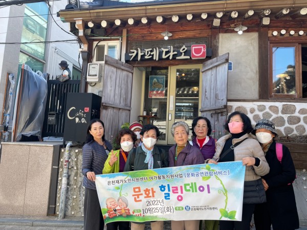 [재가노인지원서비스] 문화공연관람서비스_대학로 연극 관람 페이지 정보 작성자 은천노인복지회 작성일22-11-02 16:46 조회14,769회 댓글0건 관련링크 이전글 다음글 목록 답변 본문 재가노인지원센터에서는 문화공연관람의 욕구가 있는 어르신들을 모시고 대학로 연극(연극라면)을 관람하였습니다. 이전글 다음글 목록 답변