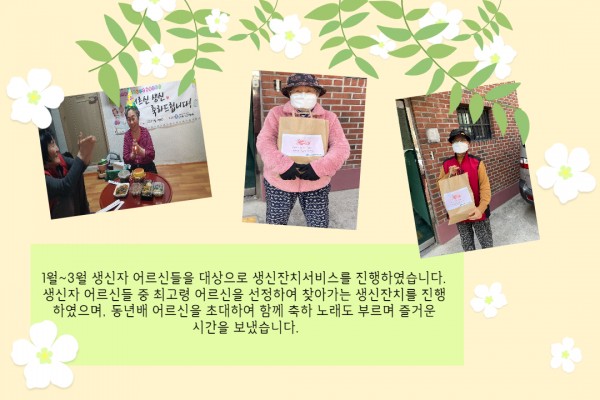 [재가노인지원서비스] 1분기 생신잔치 페이지 정보 작성자 은천노인복지회 작성일22-03-30 14:03 조회17,518회 댓글0건 관련링크 이전글 다음글 목록 답변 본문 1분기 생신잔치 이전글 다음글 목록 답변