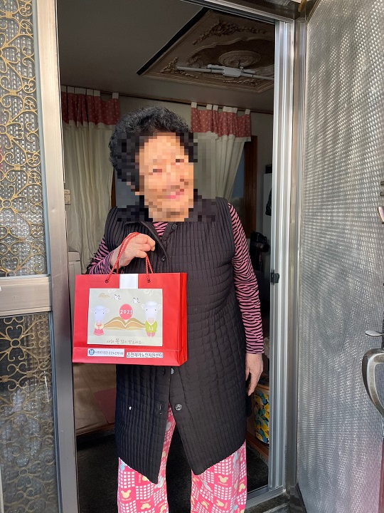 [재가노인지원센터] 설명절 선물지원서비스 페이지 정보 작성자 은천노인복지회 작성일21-02-26 09:42 조회23,413회 댓글0건 관련링크 이전글 다음글 목록 답변 본문 2021년 설 멸정을 맞이하여 어르신들을 찾아뵙고 선물을 전하면서 안부확인을 진행하였습니다. 이전글 다음글 목록 답변