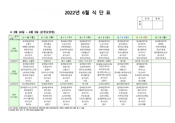 6월 첫째주 식단표 페이지 정보 작성자 은천노인복지회 작성일22-05-27 13:50 조회104,869회 댓글0건 관련링크 이전글 다음글 목록 답변 본문 . 이전글 다음글 목록 답변
