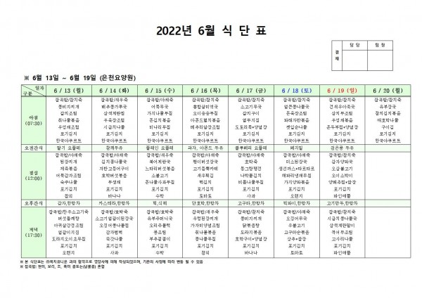 6월 셋째주 식단표 페이지 정보 작성자 은천노인복지회 작성일22-06-10 18:17 조회104,194회 댓글0건 관련링크 이전글 다음글 목록 답변 본문 . 이전글 다음글 목록 답변