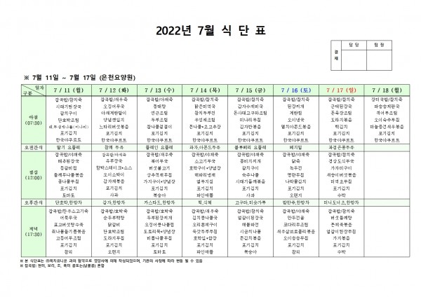 7월 둘째주 식단표 페이지 정보 작성자 은천노인복지회 작성일22-07-07 17:19 조회101,981회 댓글0건 관련링크 이전글 다음글 목록 답변 본문 . 이전글 다음글 목록 답변