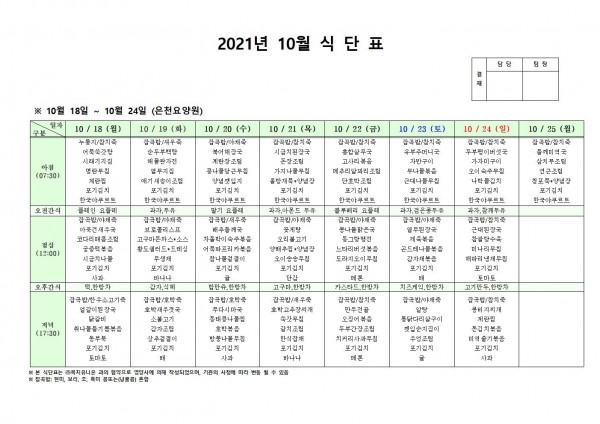 10월 셋째주 식단표 페이지 정보 작성자 은천노인복지회 작성일21-10-14 16:24 조회126,648회 댓글0건 관련링크 이전글 다음글 목록 답변 본문 . 이전글 다음글 목록 답변