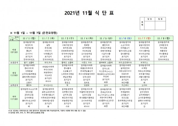 11월 첫째주 식단표 페이지 정보 작성자 은천노인복지회 작성일21-10-28 16:55 조회126,472회 댓글0건 관련링크 이전글 다음글 목록 답변 본문 . 이전글 다음글 목록 답변