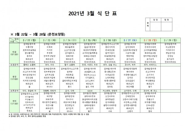3월 넷째주 식단표 페이지 정보 작성자 은천노인복지회 작성일21-03-18 17:41 조회144,015회 댓글0건 관련링크 이전글 다음글 목록 답변 본문 3월 넷째주 식단표 이전글 다음글 목록 답변