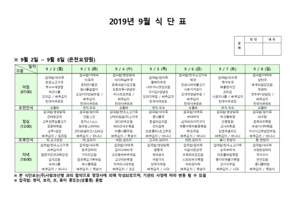 9월 첫째주 식단표 페이지 정보 작성자 은천노인복지회 작성일19-09-09 14:48 조회197,207회 댓글0건 관련링크 이전글 다음글 목록 답변 본문 9월 첫째주 식단표 이전글 다음글 목록 답변