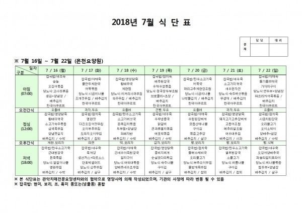 7월 셋째주 식단표 페이지 정보 작성자 은천노인복지회 작성일18-07-23 11:24 조회209,332회 댓글0건 관련링크 이전글 다음글 목록 답변 본문 7월 셋째주 식단표 이전글 다음글 목록 답변