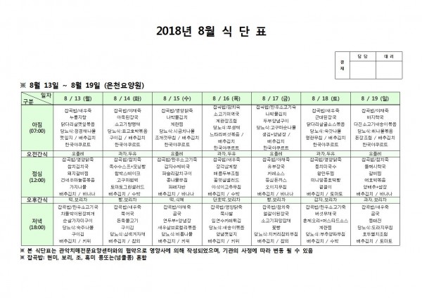 8월 셋째주 식단표 페이지 정보 작성자 은천노인복지회 작성일18-08-27 09:47 조회207,965회 댓글0건 관련링크 이전글 다음글 목록 답변 본문 8월 셋째주 식단표 이전글 다음글 목록 답변