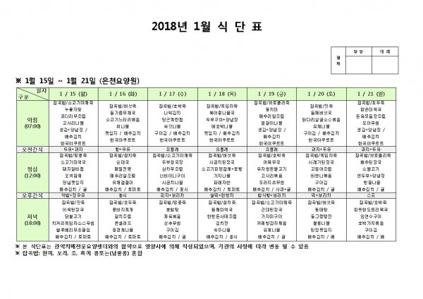 1월 셋째주 식단표 페이지 정보 작성자 은천노인복지회 작성일18-01-17 15:16 조회195,039회 댓글0건 관련링크 이전글 다음글 목록 답변 본문 1월 셋째주 식단표 이전글 다음글 목록 답변
