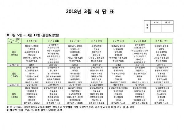 3월 둘째주 식단표 페이지 정보 작성자 은천노인복지회 작성일18-03-05 16:27 조회197,645회 댓글0건 관련링크 이전글 다음글 목록 답변 본문 3월 둘째주 식단표 이전글 다음글 목록 답변
